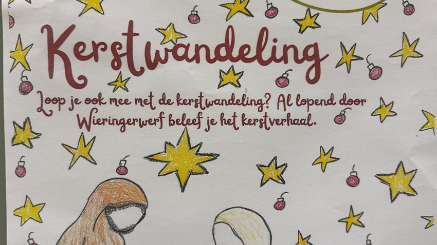 Dinsdag 16 december vindt de kerstwandeling plaats door Wieringerwerf. De kerstwandeling is dit jaar onze kerstviering die we samen met de kerken in Wieringerwerf organiseren. Speciaal voor gezinnen met jonge kinderen zijn er startblokken tussen 18.00 en 18.45 uur. Inschrijven hiervoor kan via de inschrijflijsten in de centrale hal. Inschrijven of aansluiten kan nog op dezelfde dag. Vanaf 18.45 uur is de kerstwandeling voor alle geïnteresseerden die willen deelnemen. Startpunt: ons kindcentrum bij de ingang aan de Terpweg.