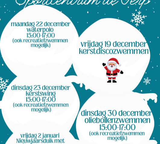 Zie bijlage voor activiteiten in de kerstvakantie bij het zwembad. Fijne vakantie allemaal!